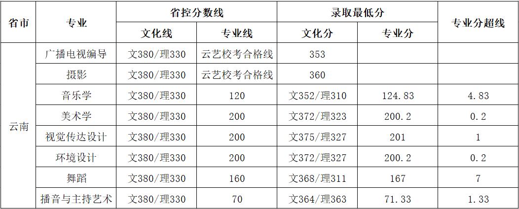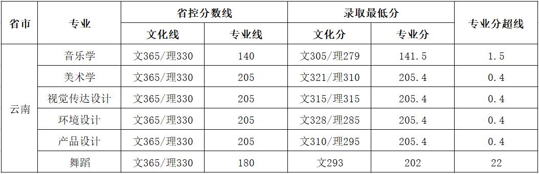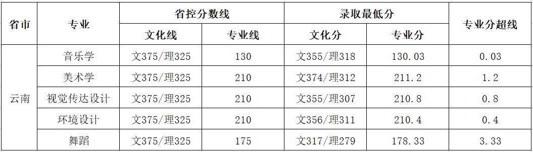 丽江文化旅游学院2020年各省艺术类本科录取控制线