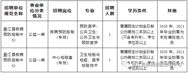 为进一步加强疾病预防控制人才队伍建设,促进人才可持续性发展。根据《中共盈江县委机构编制委员会办公室关于同意2022年度卫生系统选优的通知》,现将县疾病预防控制中心2022年招聘紧缺优秀医学专业人才事宜公告如下: