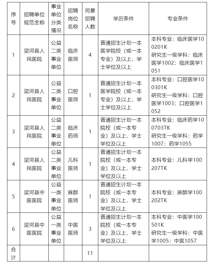 根据《德宏州人力资源和社会保障局关于印发2025年教育卫生部门考核招聘紧缺专业学科优秀人才工作方案的通知》(德人社发〔2024〕32号)《中共梁河县委机构编制委员会办公室编制使用通知》(梁机编办准〔2024〕8号)文件精神,2025年梁河县人民医院、梁河县中医医院考核招聘紧缺专业学科优秀人才11人,现将招聘有关事项通知如下:
