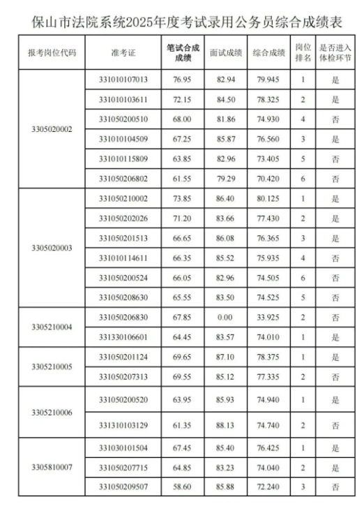 根据云南省2025年度考试录用公务员工作安排,笔试、面试工作已经结束,现将报考保山市法院系统公务员考生综合成绩及后续工作安排公告如下。