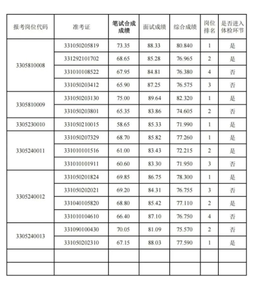 综合成绩按照笔试合成成绩、面试合成成绩各占50%的比例合成,笔试合成成绩、面试合成成绩四舍五入后均保留至小数点后2位,综合成绩四舍五入后保留至小数点后3位。具体综合成绩详见附件。